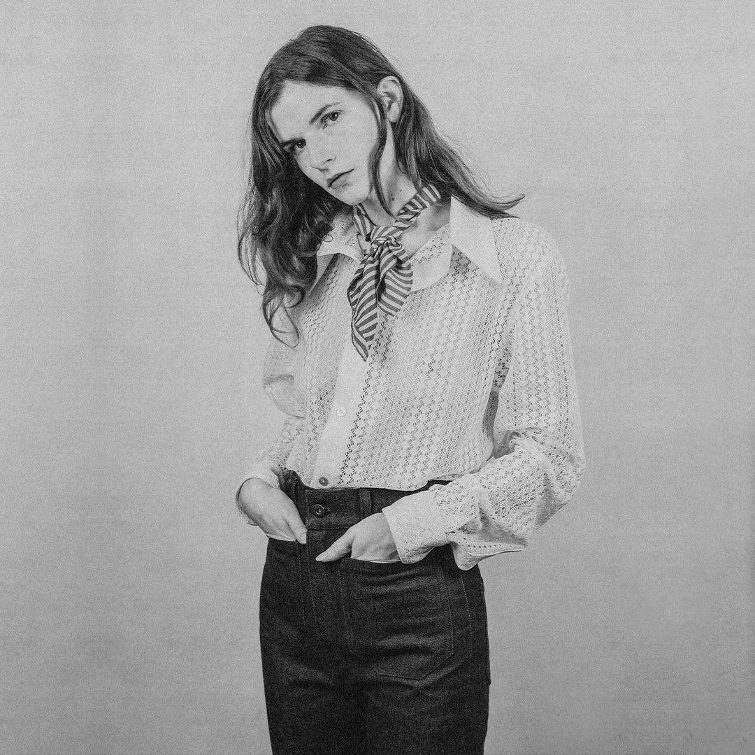 "It is the most sophisticated technique I know. It consists of rolling the edge of the fabric between your fingers until you have a tight, smooth and tonic hem. Once I got it, I fix it with a handmade stitch. I also try to use yarn that matches as much as possible with the fabric so my finishing will almost be invisible and will melt into the fabric! How psych is that?" - Paulette