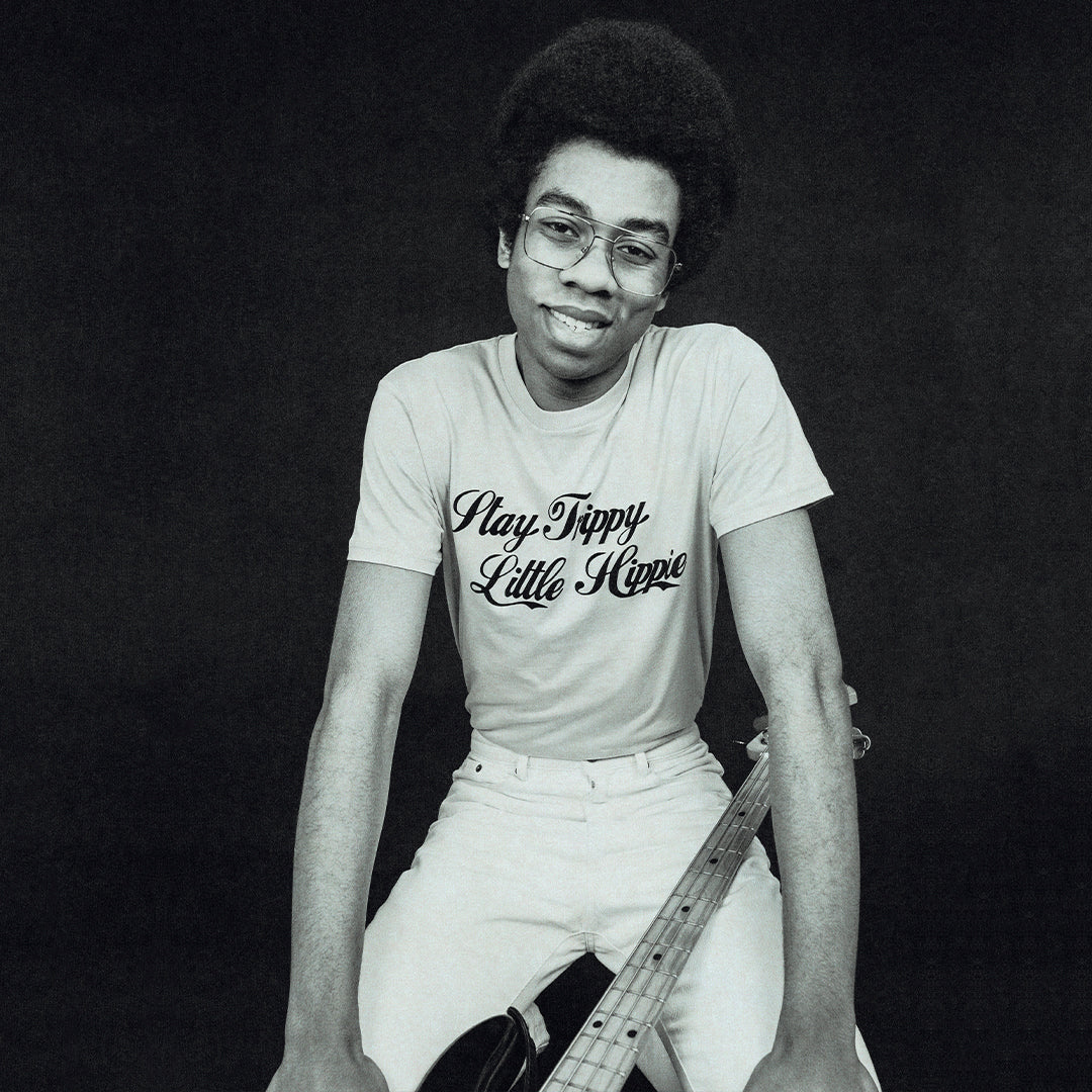Iconic vintage unisex baby blue t-shirt with short sleeves and rounded collar, Stay Trippy Little Hippie flocked in Paris.