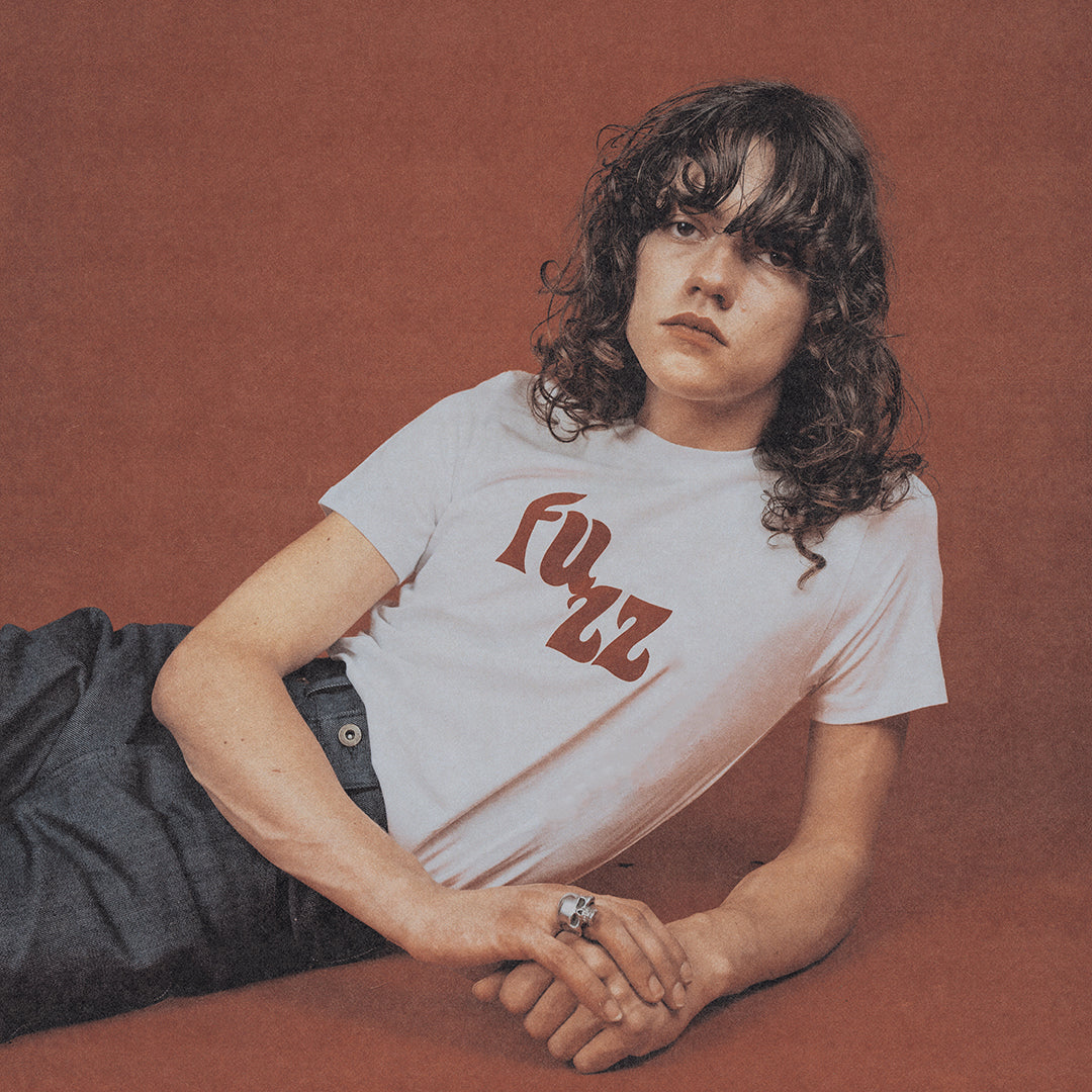 Iconic vintage unisex white t-shirt with short sleeves and rounded collar, FUZZ flocked in Paris.