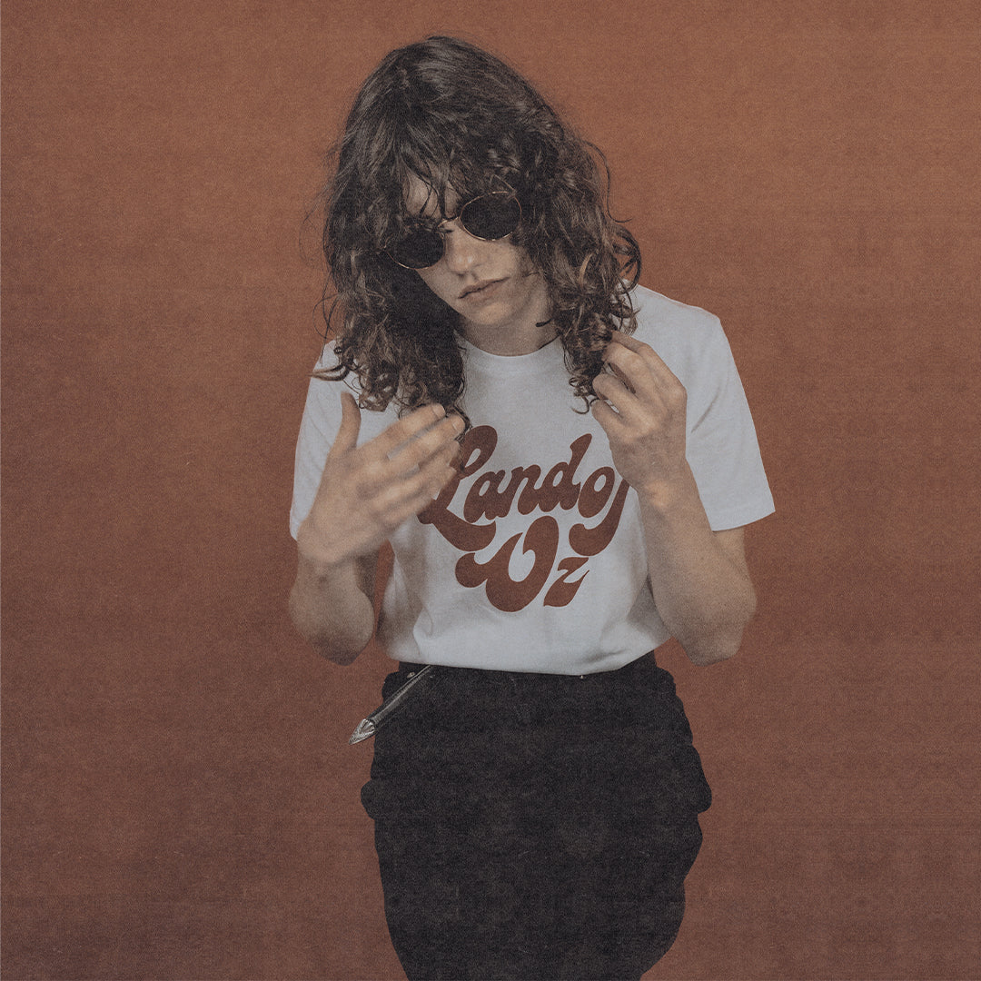 Iconic vintage unisex white t-shirt with short sleeves and rounded collar, LAND OF OZ flocked.