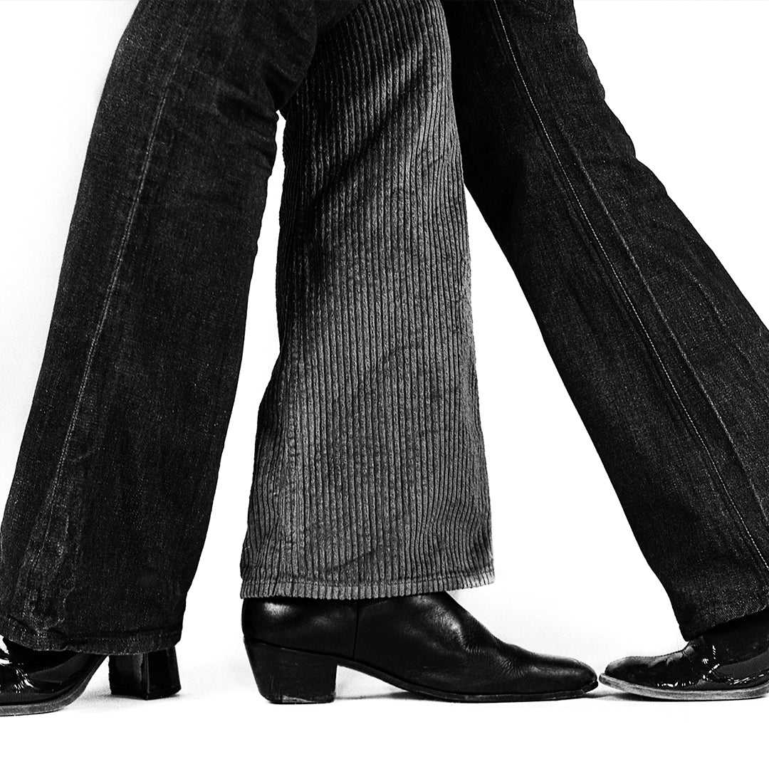 Iconic high-waisted 5 pockets unisex flare jeans made of a red clay corduroy cotton with rivets on the front pockets. All the processes of design, sourcing, and production are made in Paris.