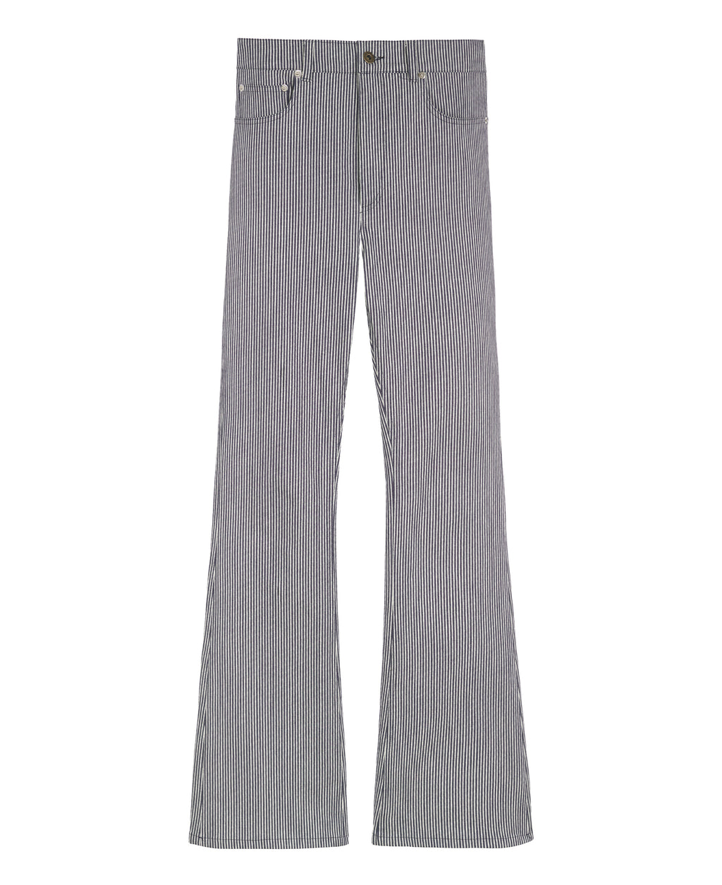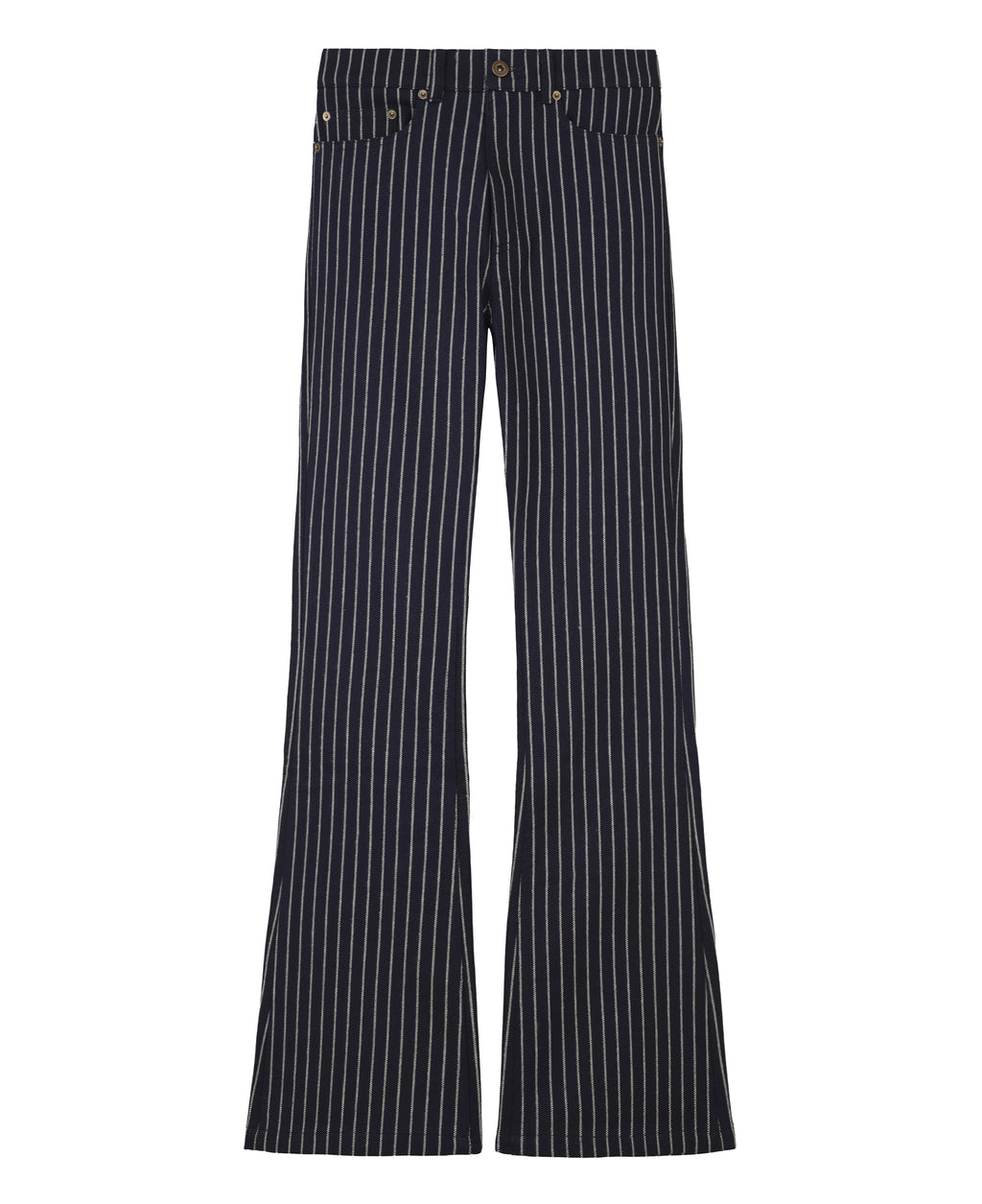 NAVY STRIPED DENIM MICK FLARE JEANS